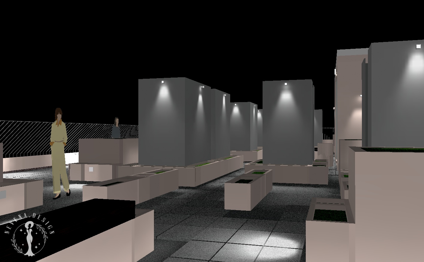 Exterior lighting design project for the roof terrace of the residential building SKY PARK in Pančevo, Serbia.