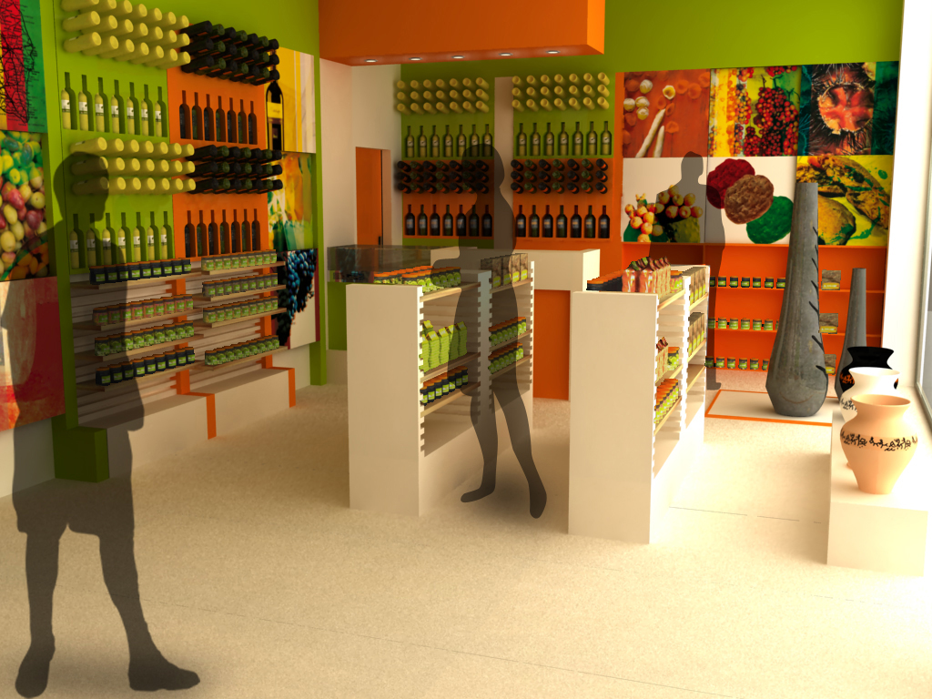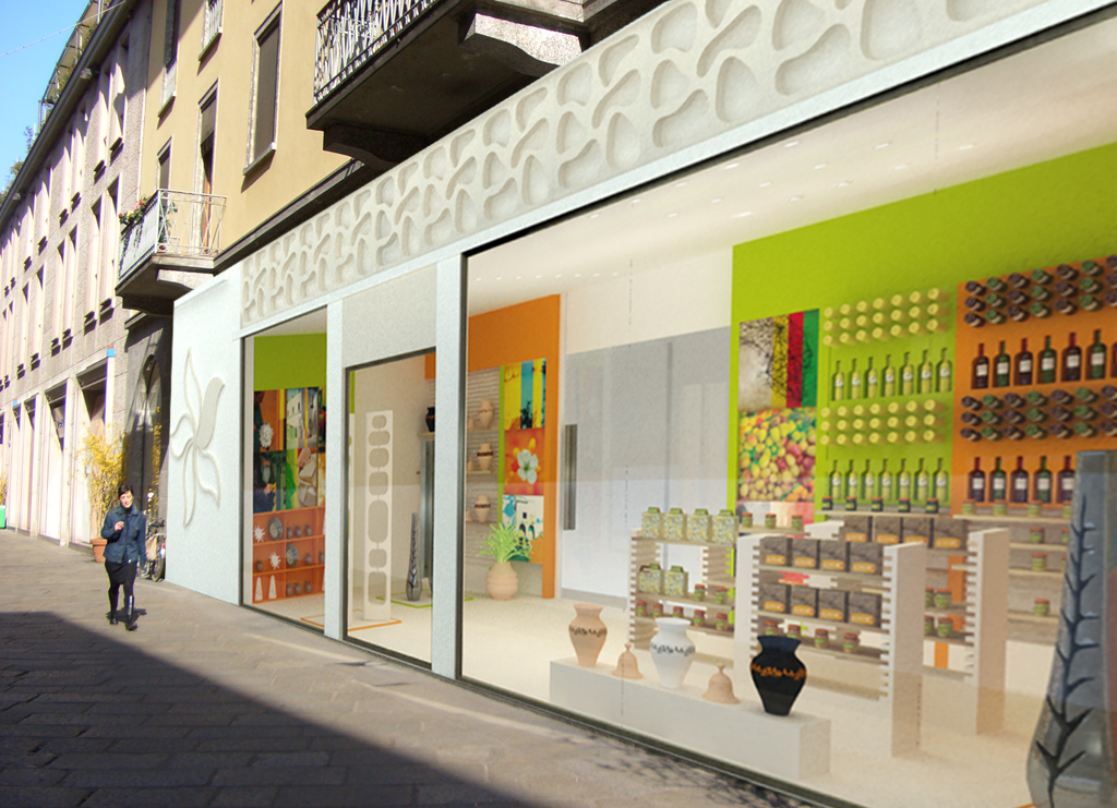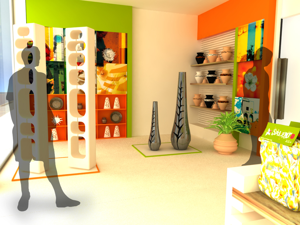 Interior design project for Salento 100% restaurant and shop. This interior project named ‘Salento 100%’ was done for a restaurant of typical Salentine cuisine. As a result, the design was done to represent the colors, materials and spirit of this southern Italian region. Meals are prepared in the kitchen a vista. The shop sells traditional products from Salento, as well as art objects made of Salento stone. The project itself was a part of thesis project prepared during Interior Design Studies at IED Milano (The Istituto Europeo di Design).